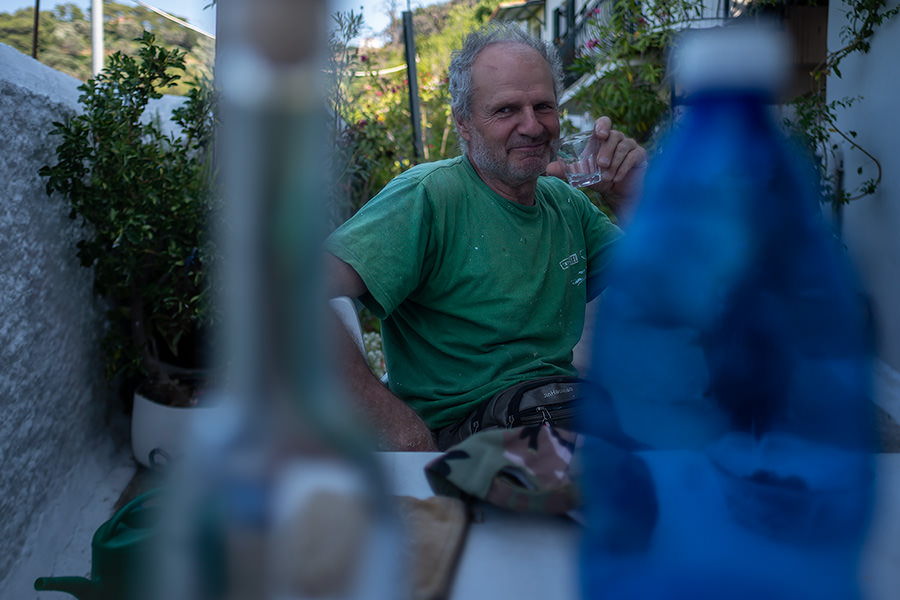 Nach der Reinigungsaktion im Frühjahr sprach uns Jannis an und schlug vor, auf der zweiten und sonnigsten Ebene einen kleinen Garten anzulegen. Gute Idee, dagegen hätten wir nichts. Ich fügte scherzhaft hinzu, dass er uns im Gegenzug ab und an eine Gurke oder Tomate überlassen könne. Jannis lächelte verzögert, schüttelte aber energisch seinen schweren Kopf. Sein Zeigefinger richtete sich deutlich in unsere Richtung. „Εσείς, όχι εγώ!“ Ihr, nicht ich. Er schien die schwebenden Fragezeichen über unseren Köpfen zu bemerken und beschwichtigte aufmunternd: „Ihr seid noch fit und habt Zeit.“ Eigentlich hatten wir nie Langeweile und immer zu tun. Wandern, Lesen, Schreiben, am Computer arbeiten, Aquarellieren oder Fotografieren. Das würde sich in Jannis’ Ohren allerdings wie fade Ausreden anhören.